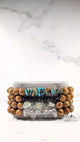 The blue-green recycled bead bracelet represents the phytoplankton bloom in the Bering Sea, which is common. Next, I used six Gray Saucer Natural Wood Beads to represent the silty waters that leave our rivers and flow into the Pacific Ocean, or the Gulf of Alaska.